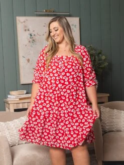 Features: Short Puff Sleeves, V Neck, Abstract Print