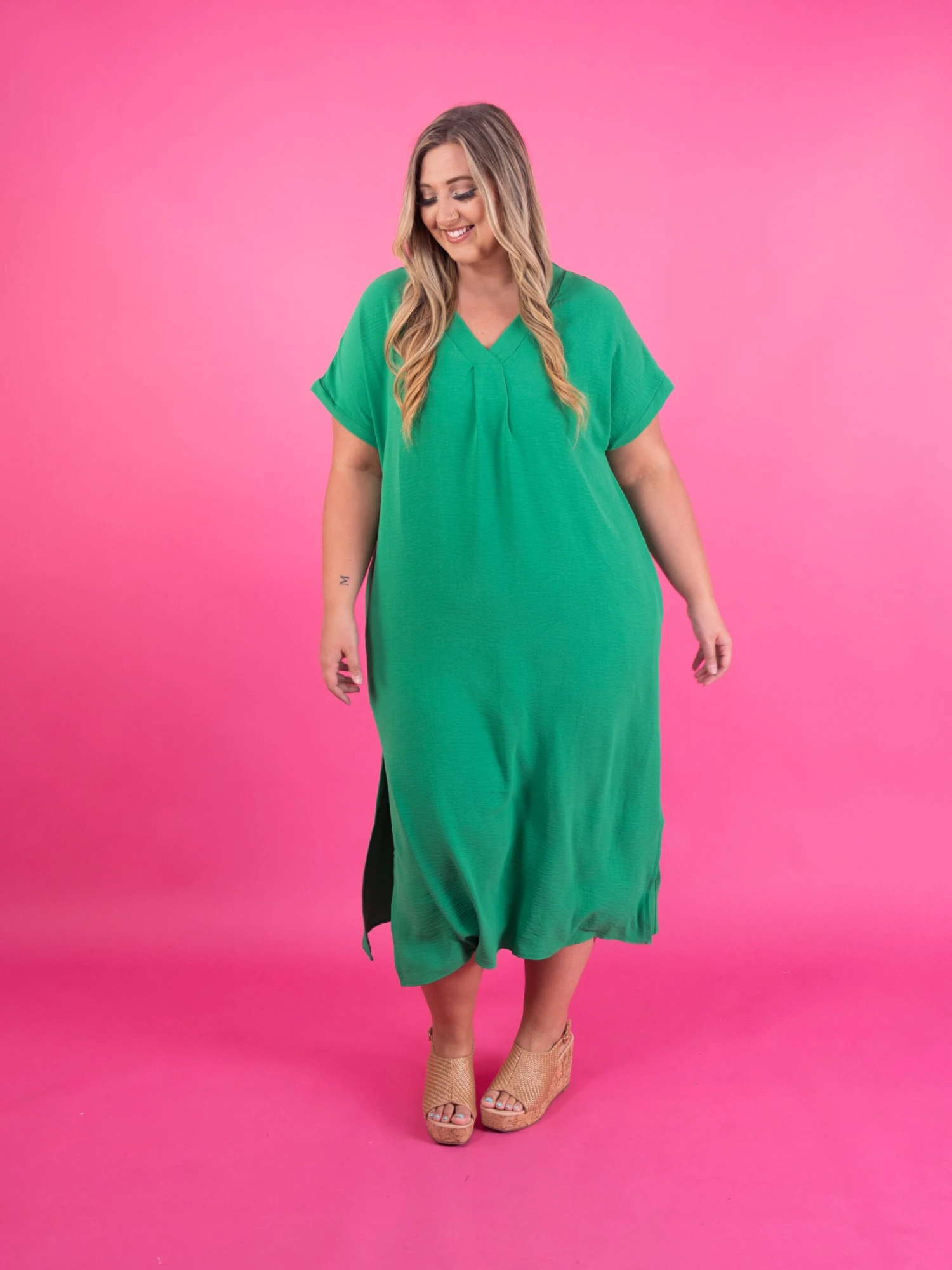 Features: V Neck, Short Sleeves, Pockets, Side Slits