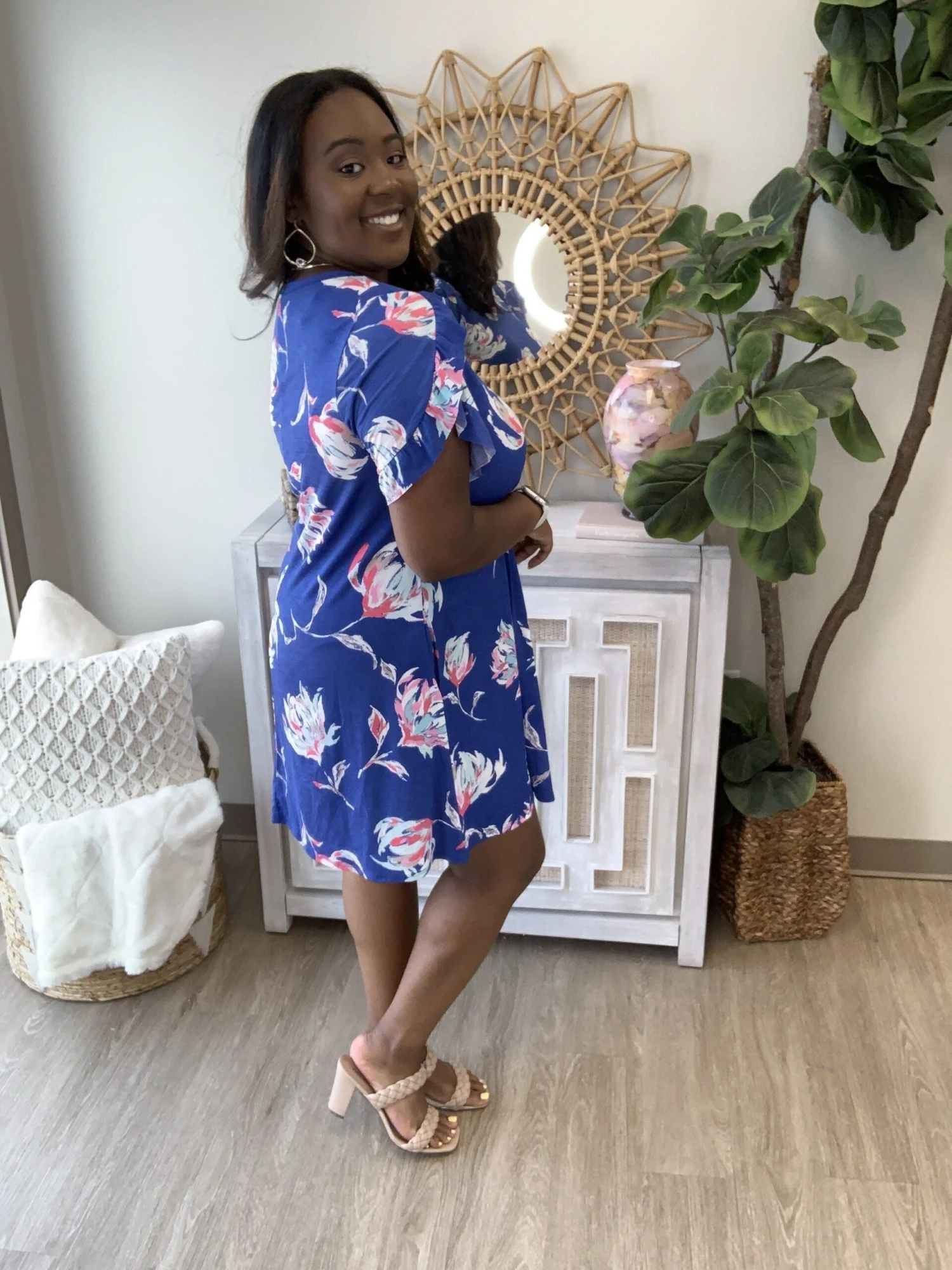 Emry: 5’5 L-XL in tops and dresses, size 14 in bottoms. Likes a looser fit