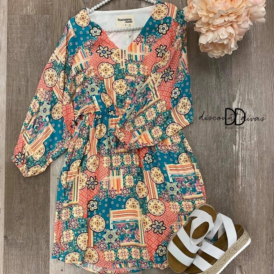 We are loving the Clothed In Strength Dress! The print and exciting colors are sure to brighten up your day! Slip on a cute pair of sandals and you are out the door ready to make the world a little bit brighter!