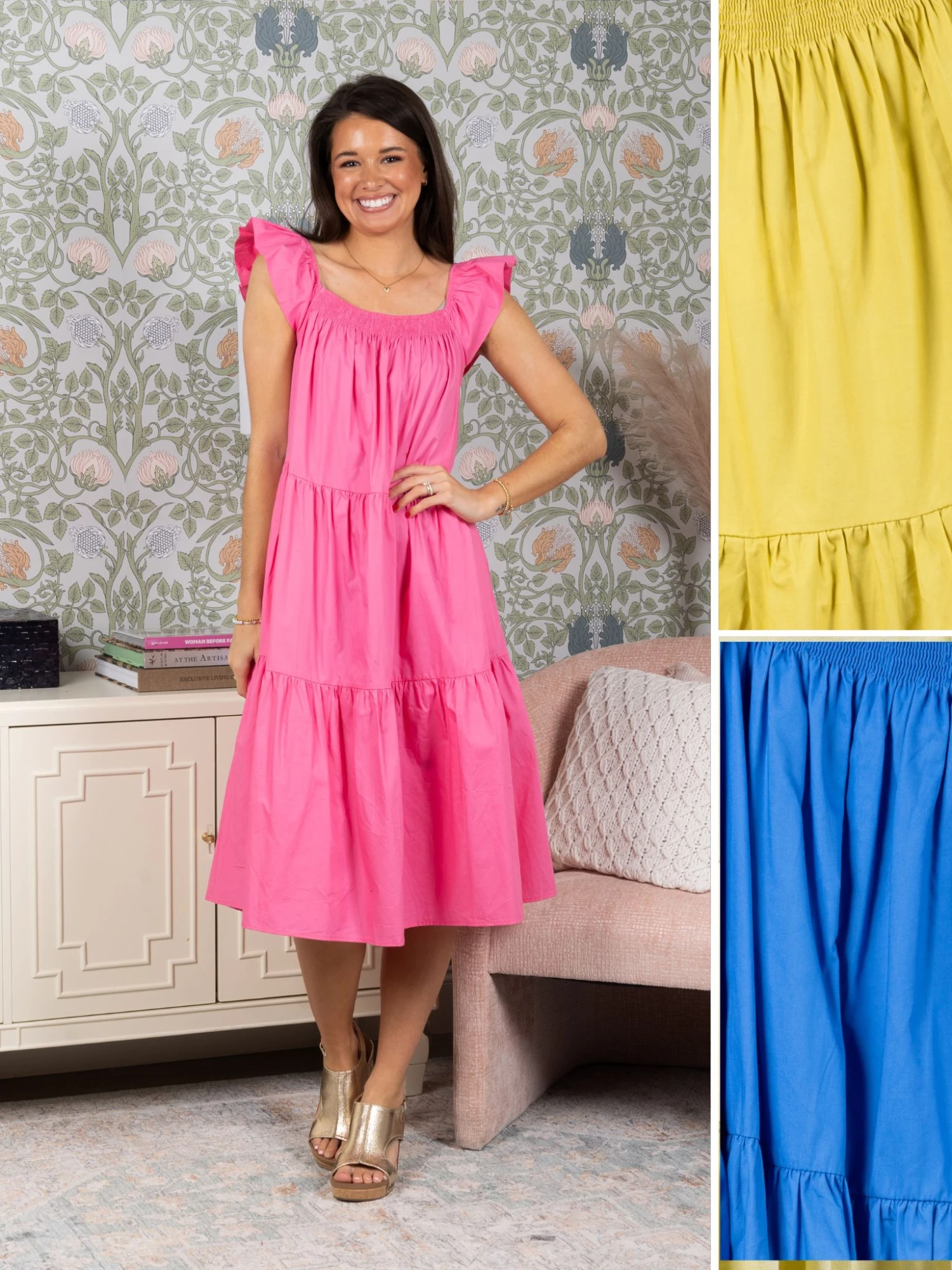 Poplin Tiered Square Neck Flutter Sleeve Midi Dress | S – 3XL