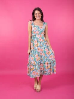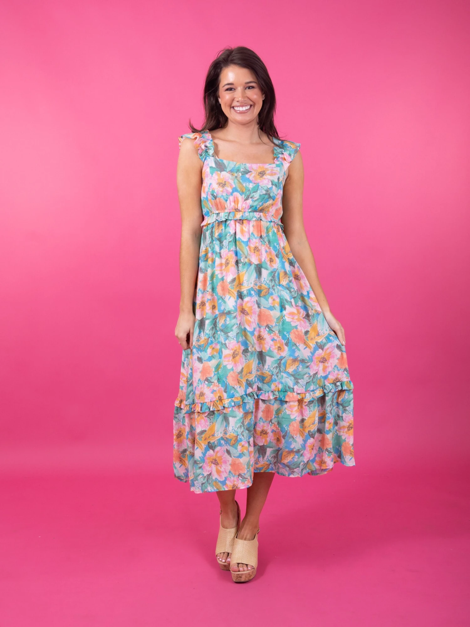 PRE-ORDER Blu Pepper Watercolor Floral Print Ruffle Midi Dress |S-L