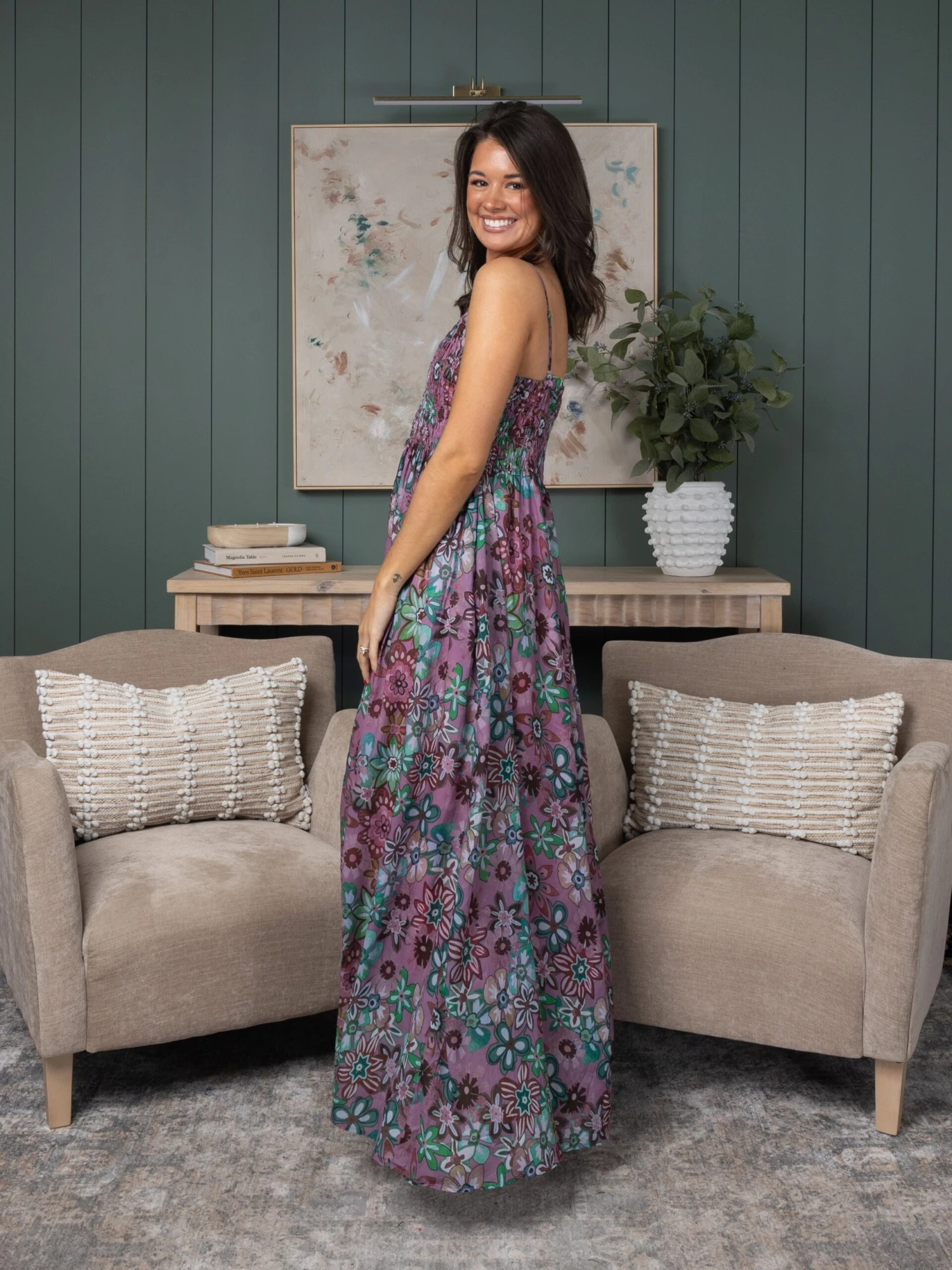 Printed Chiffon Smocked Top Lined Maxi Dress | S – L