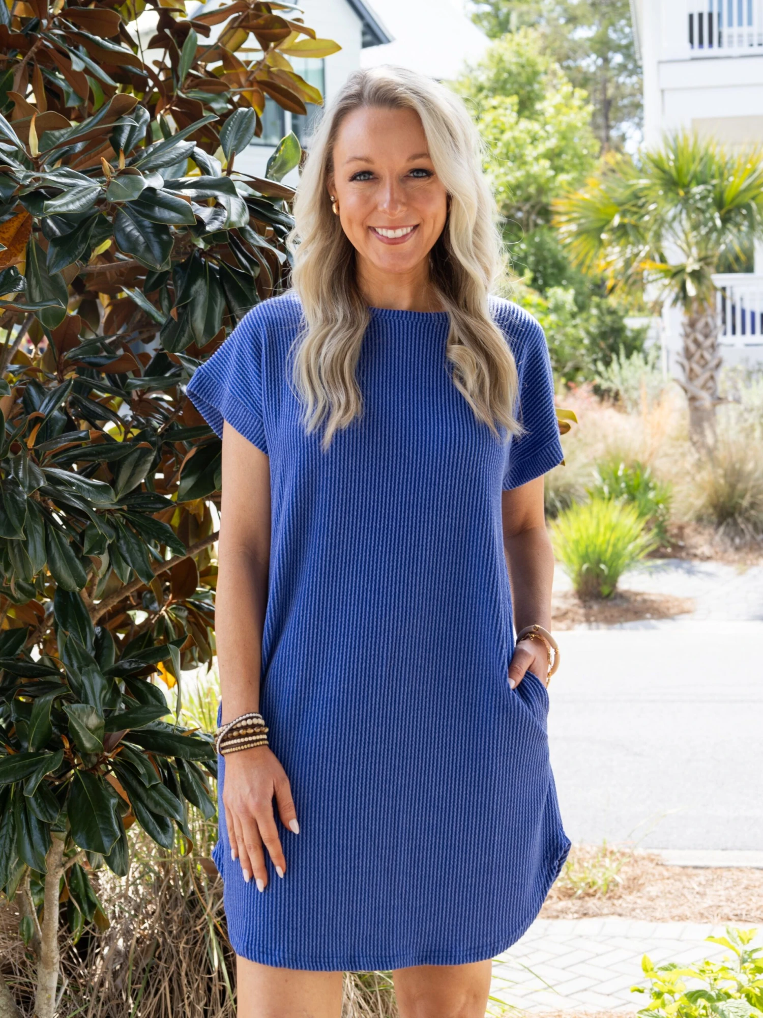 Features: Round Neck, Short Sleeves, Pockets, Ribbed