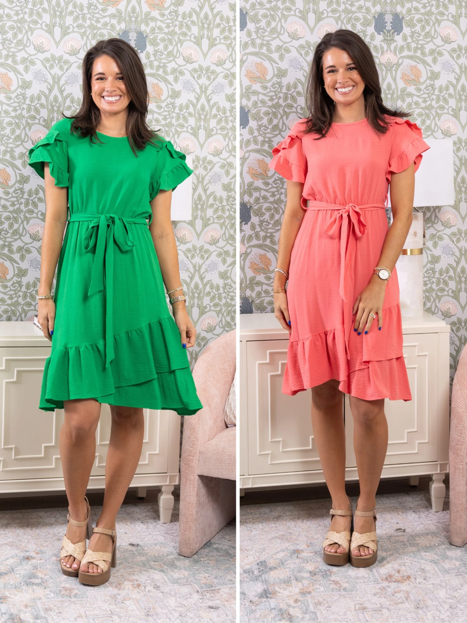 Round Neck Ruffle Sleeve Tiered Dress | S – XL