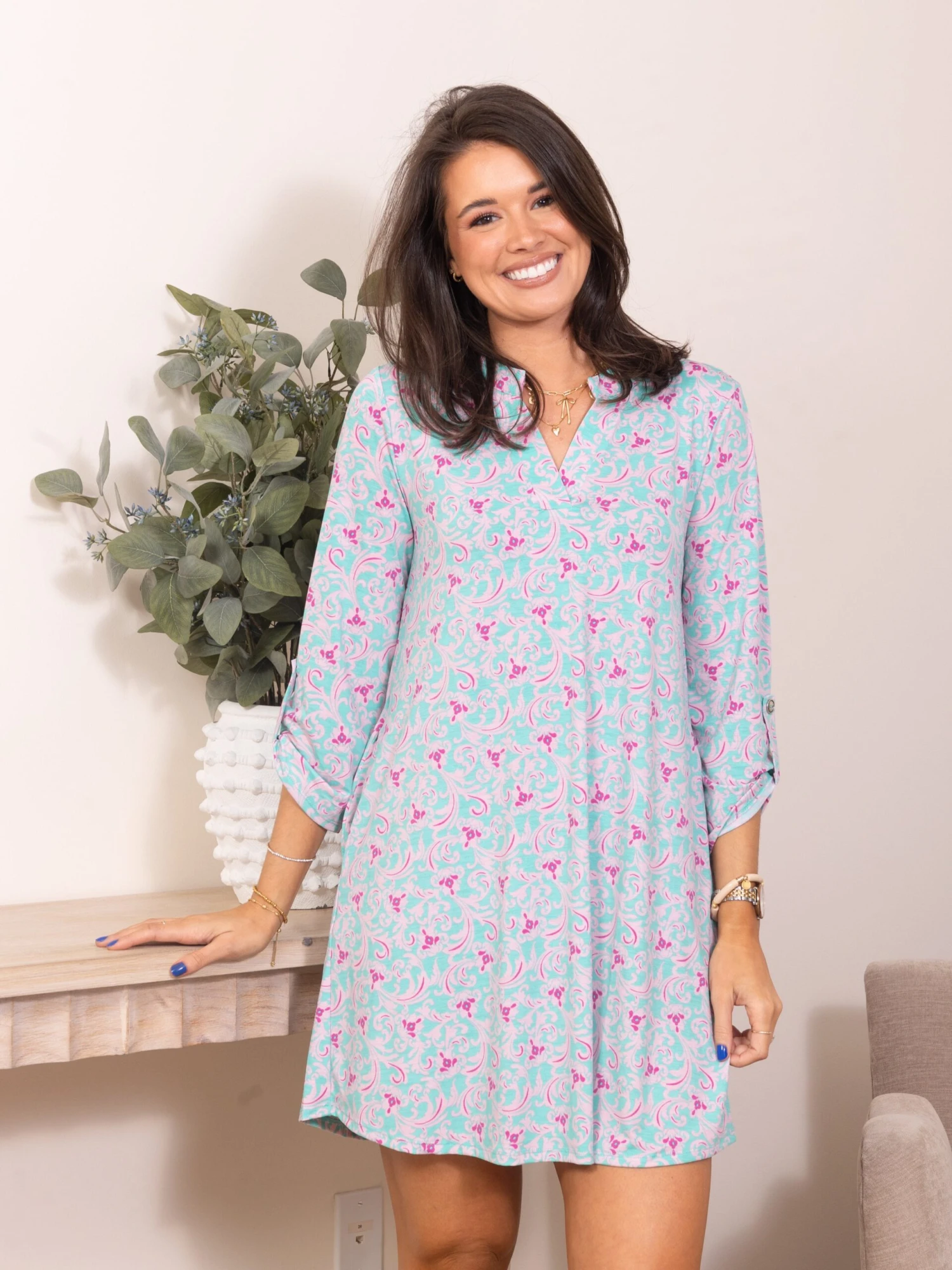 Features: Split Neck, 3/4 Sleeves, Pockets, Printed