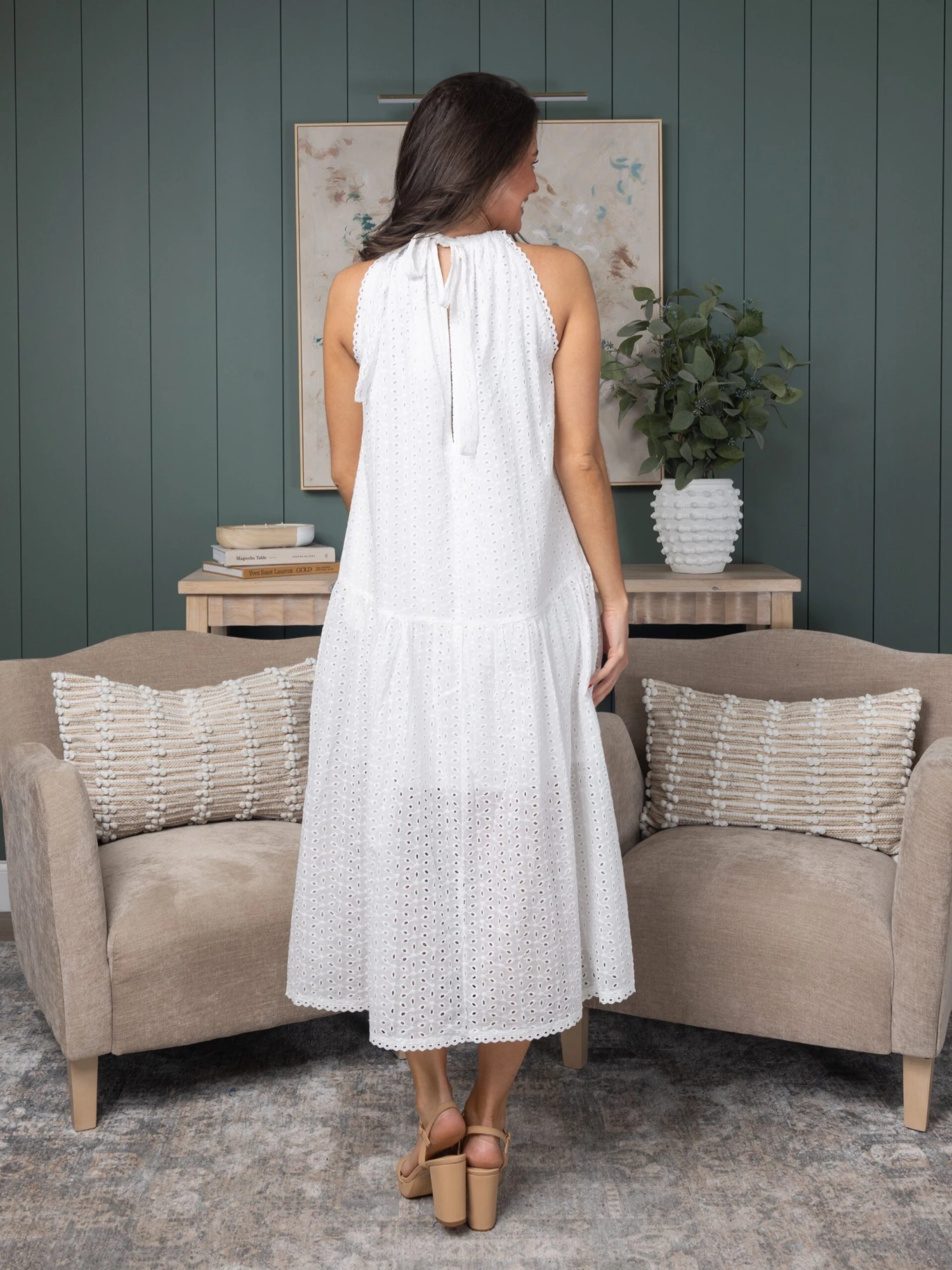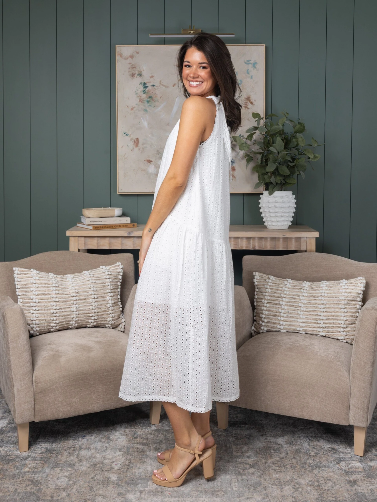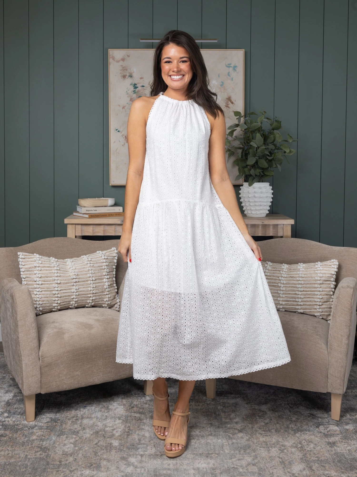 Sleeveless Drop Waist Eyelet Dress | S – L