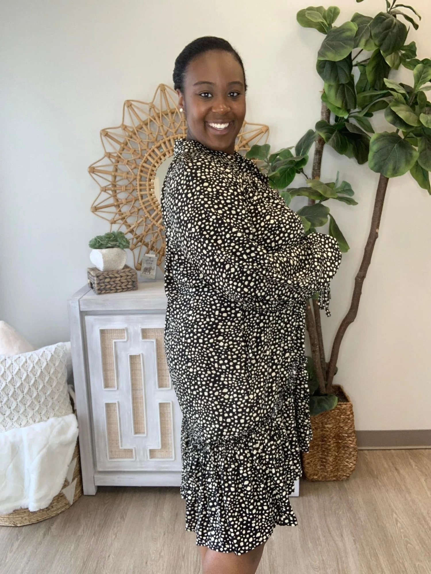 Emry: 5’5’ XL/L in tops and dresses, Size 14 In bottoms